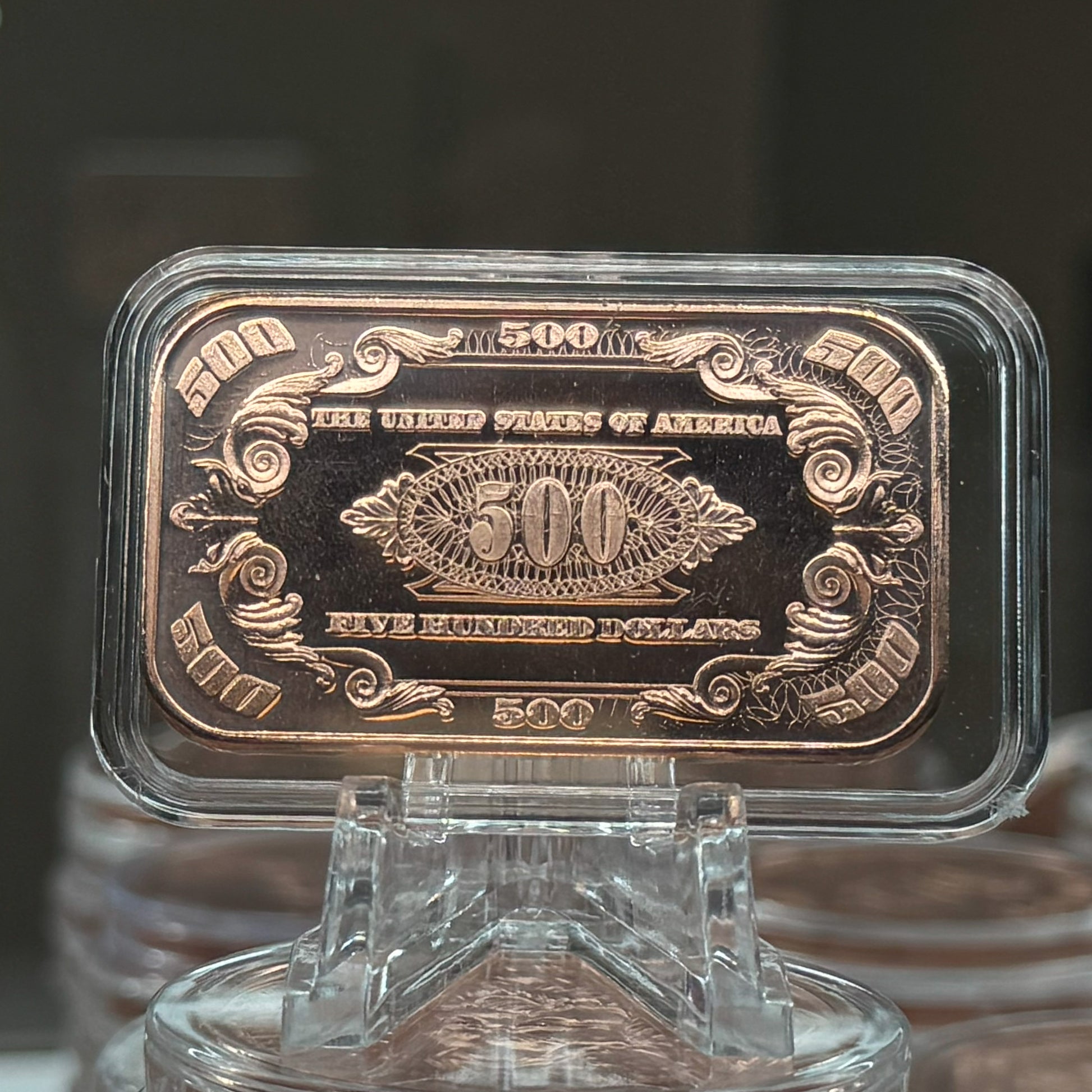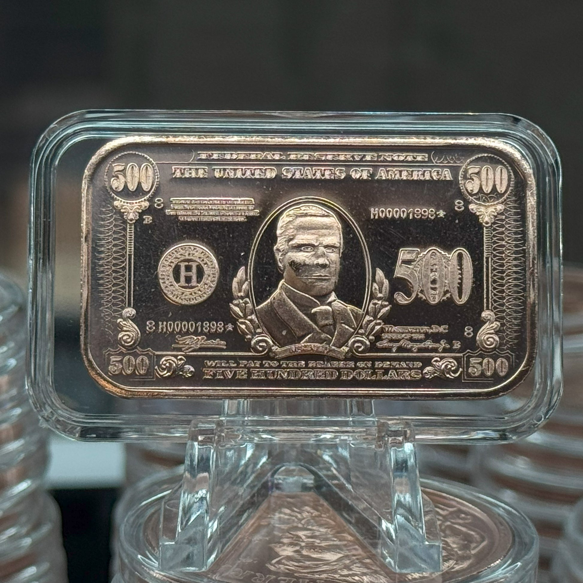 LOT OF 100 X 1 oz copper bar $500 banknote William McKinley / $500 loc BL4C