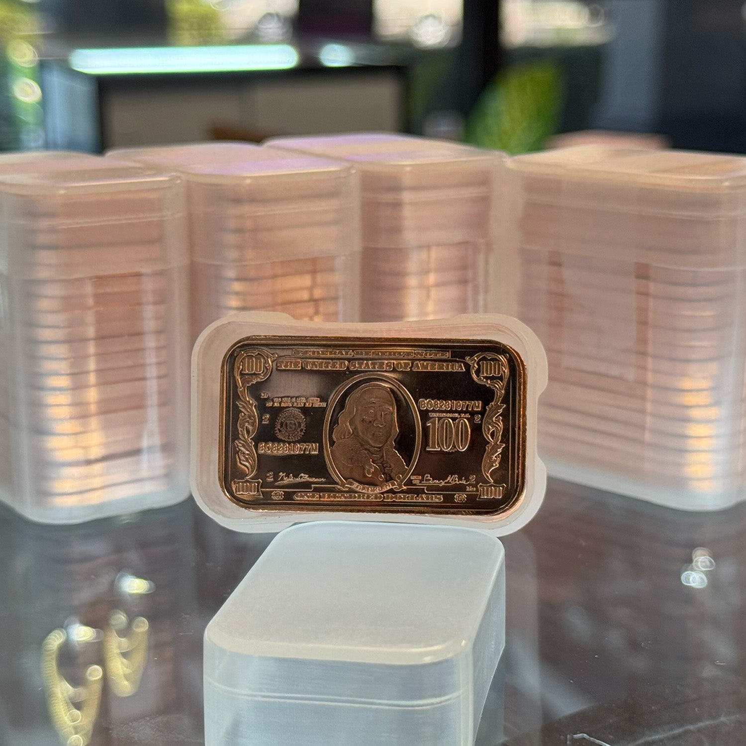 20 Count x 1 oz Copper franklin HUNDRED $100 Bars w/ 1 Tube for Easy Storage LOC RSC1